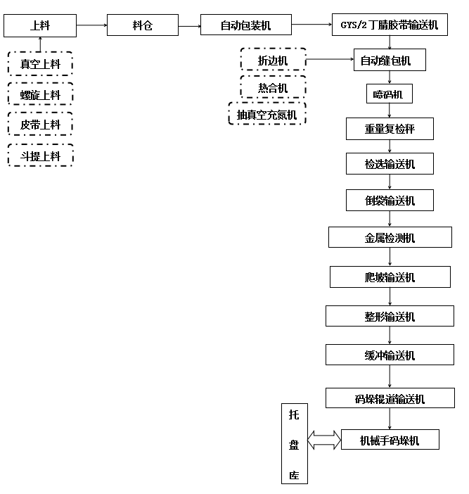 適用范圍 氯化鉀、氯化鈣、片堿、苯酐、抗氧化劑、電池材料、氧化鋅、氫氧化鋁、高氯酸鉀、醫(yī)藥中間體、農(nóng)藥等粉狀、片狀、超細粉物料的包裝生產(chǎn)線